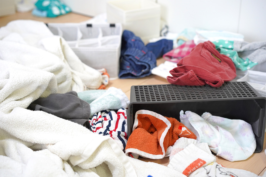 部屋の片づけかできないほか、服を脱ぎ散らかす、机の上が整理整頓できていないなどが見られます。
